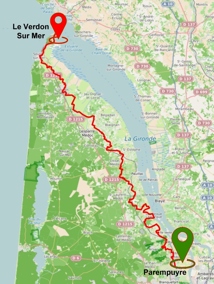 par temps sec. Il nous manque donc les 38 premiers km depuis Parempuyre