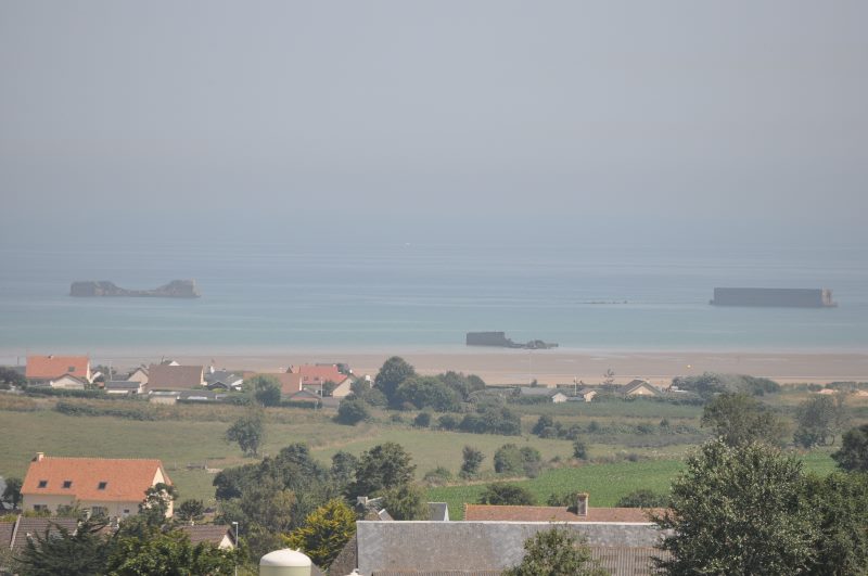 Arromanches et son port artificiel vu depuis les hauteurs de la campagne